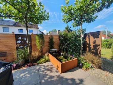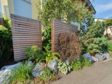 Ein Sicht- oder auch ein Windschutz ist vielerorts im Garten erforderlich, es entsteht Behaglichkeit und individuelle Räume werden geschaffen. Lösungen gibt es viele, diese richten sich nach persönlichen Vorlieben; von abstrakt über modern bis hin zu verspielten Akzenten ist alles denkbar. Mit verschiedenen Materialien können unterschiedliche Wirkungen erzielt werden. Pflanzen, der Mittelpunkt eines jeden Gartens. Sie eignen sich durch ihre Vielfalt hervorragend als lebendiger Sichtschutz. Bei der Pflanzenauswahl sollten zwei entscheidende Kriterien, das Winterbild und der Wuchs, berücksichtigt werden, unsere Pflanzenexpertin berät sie gern. Sicherheit und ausreichend Privatsphäre garantieren fest verbaute Elemente in Form von Wänden, Zäunen und Mauern. Die Auswahl der einzusetzenden Materialen - wie Glas, Holz, Stahl, Textil, Stein - ist vom persönlichen Stilgefühl und den örtlichen Gegebenheiten abhängig. Stimmungsvolle Glanzpunkte lassen sich z.B. durch ein passendes Lichtdesign erzielen. Eine indirekte Beleuchtung ist nicht nur ein Sicherheitsaspekt, sondern arbeitet die Formen und Oberflächen der Gestaltungselemente zusätzlich heraus.