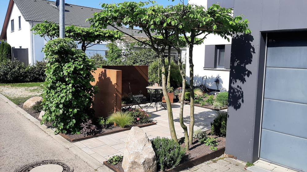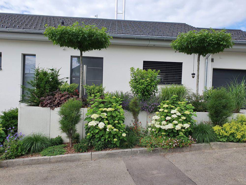 Vorgärten sind der ideale Auftakt vor dem Haus und sollen das ganze Jahr über einladend wirken. Im Unterschied zum eigentlichen Garten ist der Vorgarten fast öffentlich – meist handelt es sich um eine relativ kleine Fläche zwischen Haus und Straße, die von Passanten bestens eingesehen werden kann. Bevor es an die Gestaltung geht, gibt es einige grundsätzliche Überlegungen: Müssen sich die Pflanzen den Platz mit einem Carport, Fahrrädern oder Mülltonnen teilen? Wünscht man sich einen Schutz vor neugierigen Blicken oder reichen zum Beispiel niedrige Hecken als optische Begrenzung? Wird ein gepflasterter Platz mit einer Bank für den Nachbarschaftsplausch bevorzugt oder soll ein trittfester Weg zwischen vielfältig bepflanzten Beeten verlaufen? Unter Verwendung von Licht, Pflanzen und Wegen lassen sich harmonische Akzente setzen, die dem Entree zugleich eine klare Struktur und ein stimmiges Bild geben. Besonders gelungen zeigt sich ein Vorgarten, der zum Stil des Hauses passt – eine Herausforderung, die wir gerne annehmen!